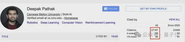 Deepak Pathak,本科就读于印度理工学院坎普尔分校,博士毕业于加州大学伯克利分校,随后继续在该学校从事博士后研究。曾在Meta担任了一年的研究员,现任卡内基梅隆大学计算机科学学院助理教授。